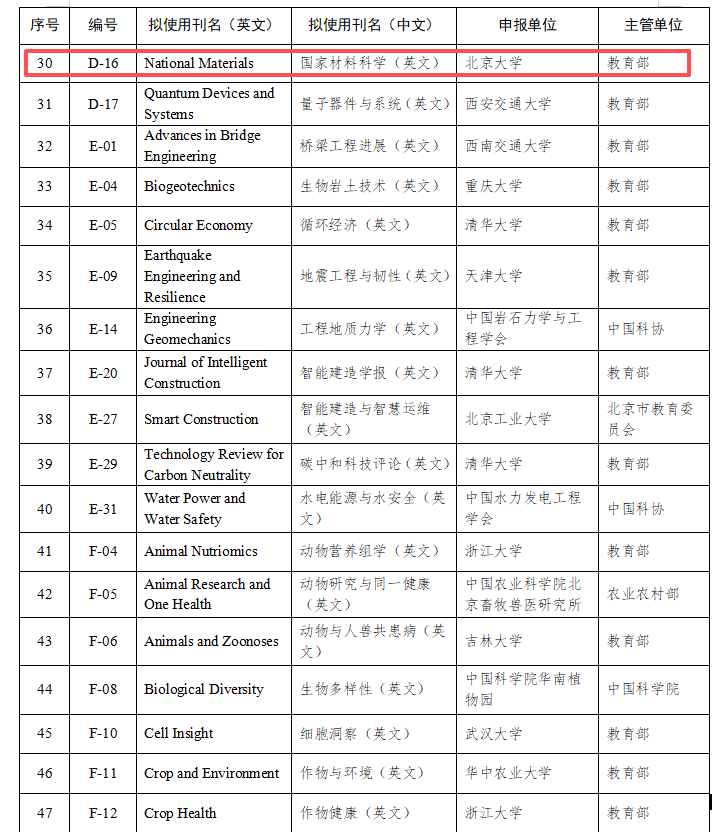材料科学与工程91热爆自主创办的《National Materials》入选中国科技期刊卓越行动计划高起点新刊项目。