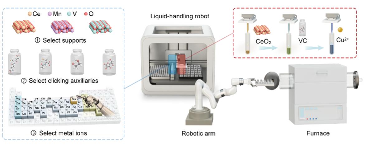 图1. 机器人驱动的面向热催化的单原子催化剂合成路线示意图