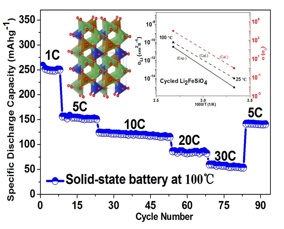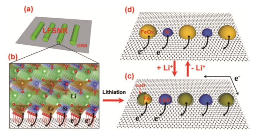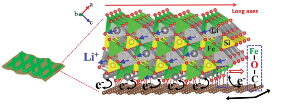 在潘锋教授的指导下,博士后杨金龙和课题组研究生将硅酸亚铁锂与石墨烯复合,并将该材料作为锂离子电池正极材料,获得了优越的电化学性能。