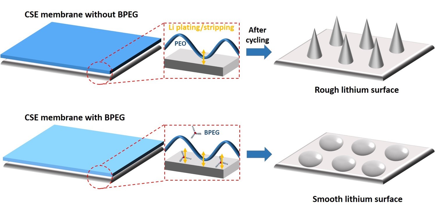 潘锋教授课题组最近在复合固态电解质及界面调控方面的研究取得重要进展。通过将无机的固态电解质(Li 3Al0 3Ti1 7(PO4)3)、有机的聚氧乙烯(PEO)和硼化聚乙二醇(BPEG)以7:1 5:1 5的比例混合,制备
