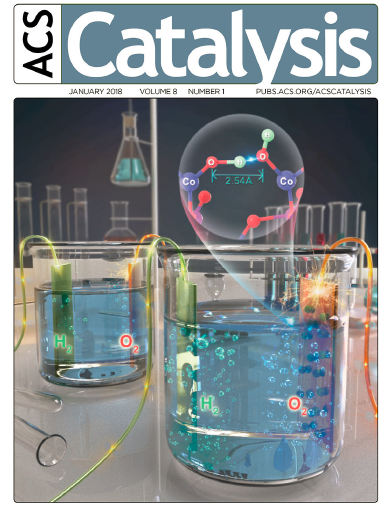 潘锋教授课题组在非贵金属催化剂材料中首次发现基于极短氢键的双中心分解水的氧析出催化机理和高性能催化材料,该研究成果以封面文章发表在近期的国际材料领域顶级科研期刊ACS Catalysis (