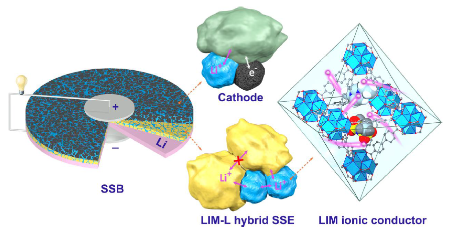 潘锋教授课题组针对固态电池的固体-固体界面问题设计了一种新型的电化学稳定的MOF离子导体,将其和LLZO结合在一起,有效地改善了界面的Li离子迁移。这种离子导体(Li-IL@ MOF,命名为LIM)是